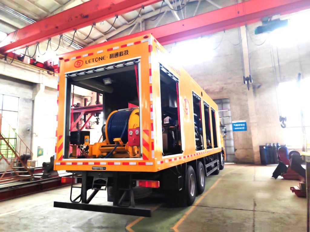 高压力、大流量:引进美国进口技术,柴油发动机驱动750型高速大流量泵,压力2800bar,可解决堵塞严重的市政管道或雨、污泥管网中的板结物或混凝土。