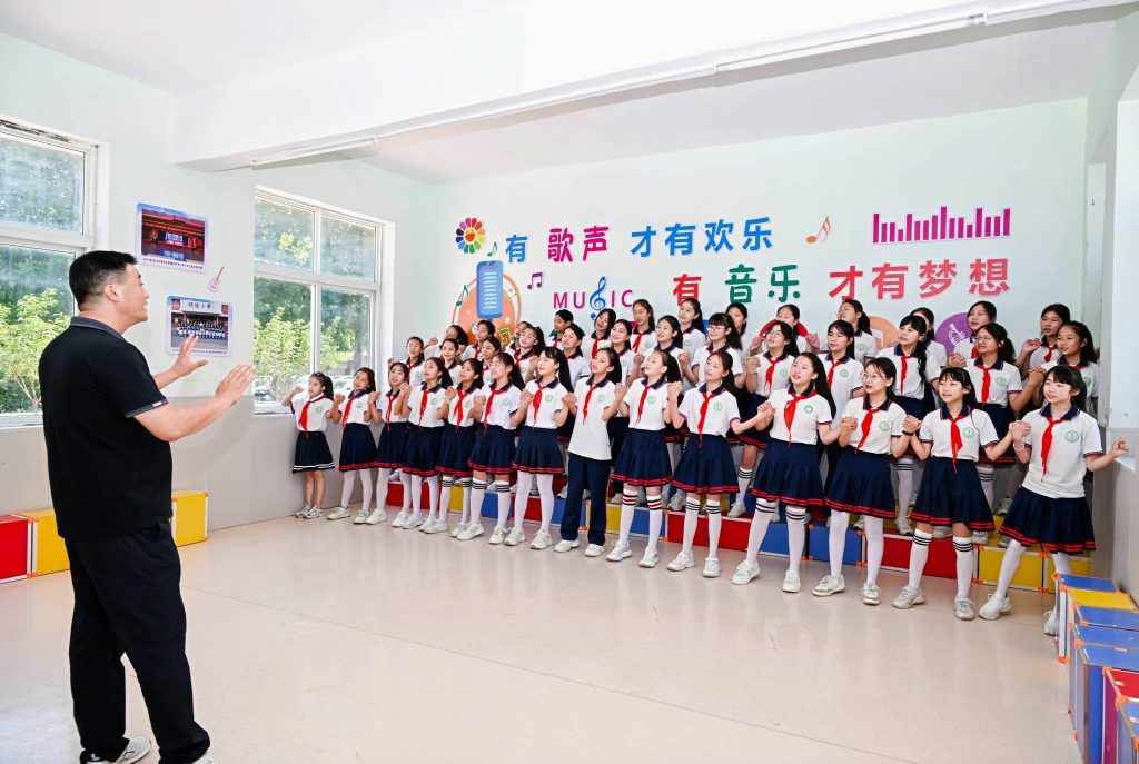 科技董事长赵洪亮与长江商学院企业家代表参观了手工艺术品展示区、少年宫科技楼等场所。教师代表详细介绍了学校在德育、智育等方面取得的丰硕成果。期间,学校合唱团演唱的《小美满》,歌声深情悠扬,瞬间唤醒了在场所有人的青春记忆。