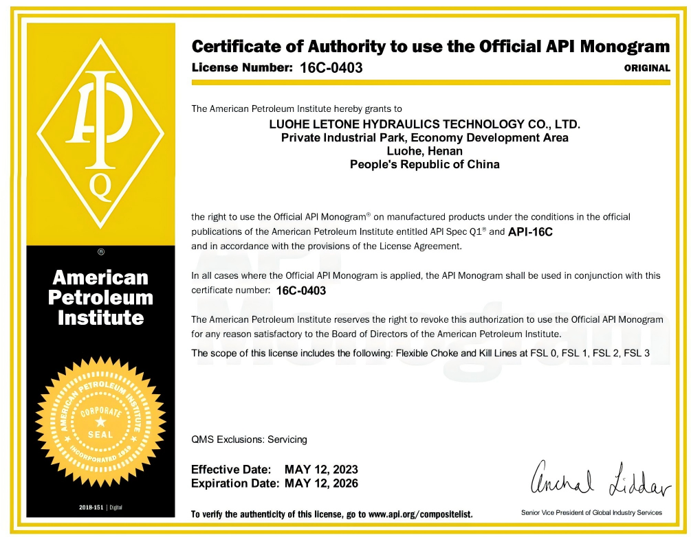 科技是国内同时拥有API 7K、16C及17K三重认证的企业。