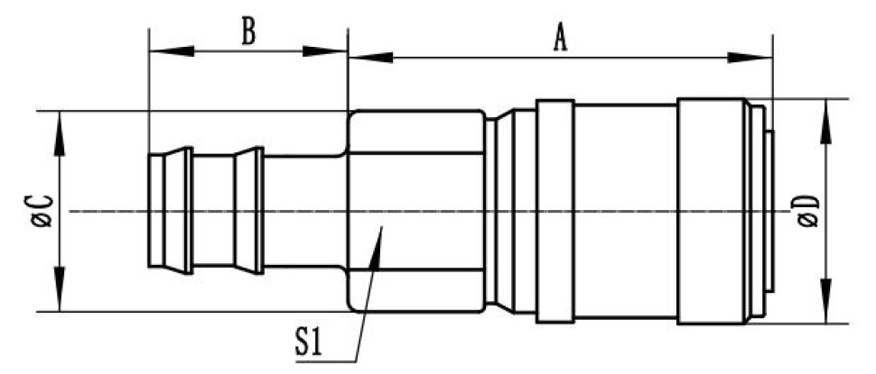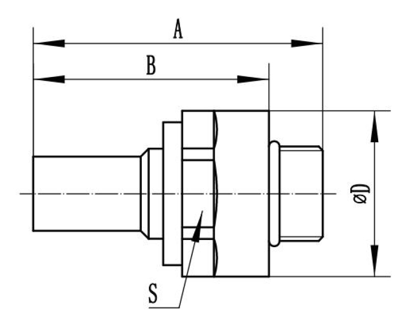 | UQDB | 螺纹/端头尺⼨ Thread/Size | 密封材质 Seal Ring material | A | B | ΦC | ΦD | S1六⽅ Hexagonal |