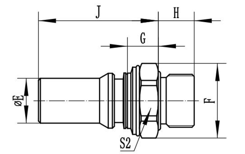 | UQDB | 螺纹/端头尺寸 Thread/Size | 密封材质 Seal Ring material | ΦE | F | G | H | J | S2六⽅ Hexagonal |