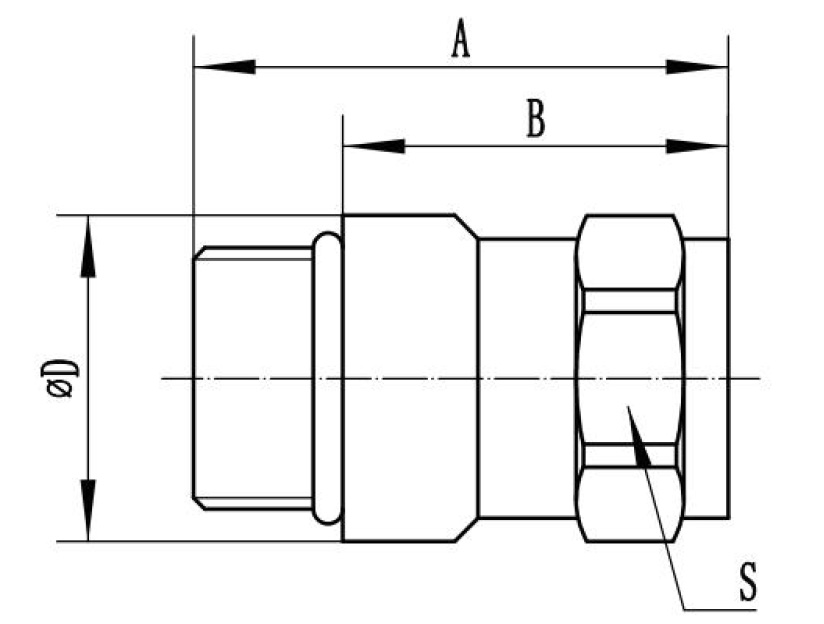 | UQDB | 螺纹/端头尺⼨ Thread/Size | 密封材质 Seal Ring materia | A | B | ΦD | S六⽅ Hexagonal |